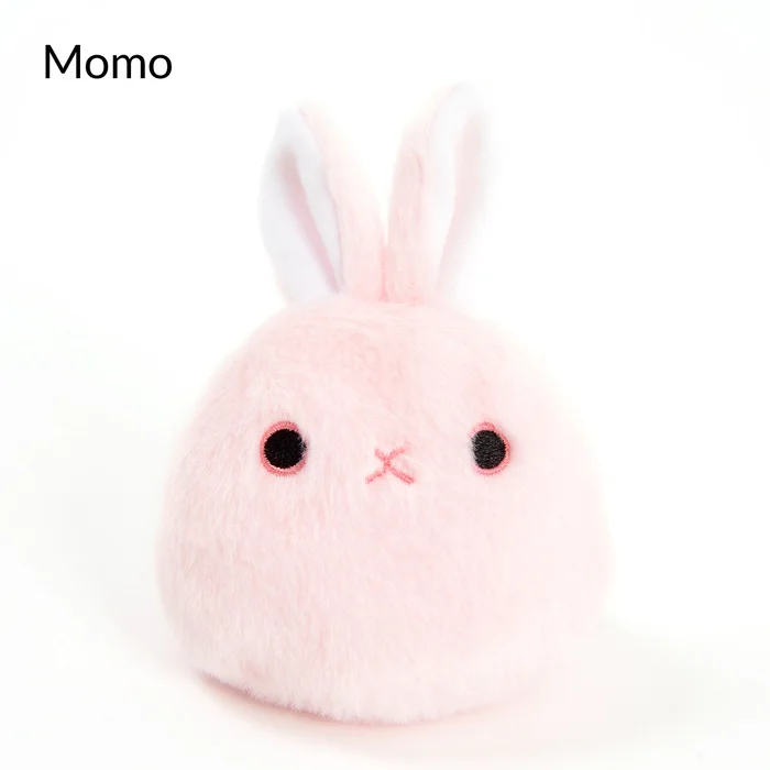 About 2.8” tall, they each come with two fluffy ears and a tail, and some of them even have a neckband made of soft white fur! Choose from White, Momo, Tea, Gray, Shiroppu, Momoppu, Haippu, and Chairoppu for a yummy pet bunny!