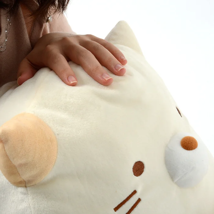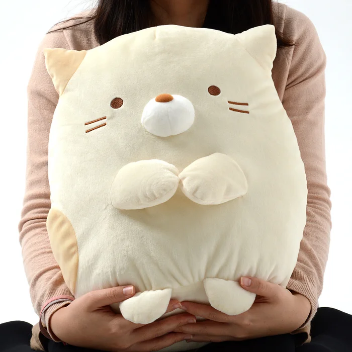 Sumikko Gurashi is a line of feel-good characters by San-X that are plump, oddly shaped animals that like to hang out in corners and love stuffing their faces full of mandarin oranges. This simple, but super-cute plushie is of the character Neko! Neko is a cat who loves to stand close to a wall, stare at it for a while, and then scratch it. If you were a cat, it would surely sound like a really fun time! If you love cats, why not share your home with this large plushie of Neko? The animals of Sumikko Gurashi may be shy and standoff-ish, but that doesn’t mean they don’t deserve a good cuddle every now and then!